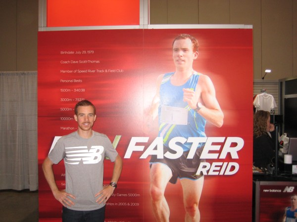 Congratulations Reid on an amazing race! I was standing in the finishing chute after having just finished the half marathon waiting with many other runners to see you cross the finish line and break a Canadian record…seeing you drape your shoulders with the Canadian flag brought tears to my eyes. My fingers are crossed for you for 2012!!!