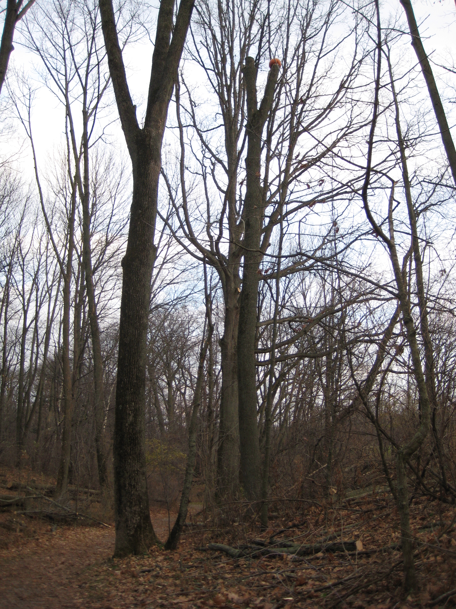 4th. There’s a pumpkin way up in a tree. I run by this spot often but it wasn’t until I was taking a rest between 1 minuters that I actually saw this…