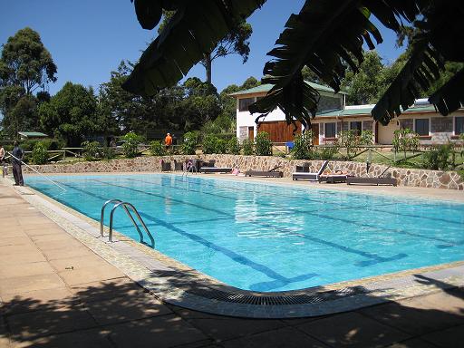 Lornah’s High Altitude Training Camp (HATC) has a pool which is deep enough for pool running, some stationary bikes and mountain bikes so I can get in some decent x-training while I’m here. Pool running here is quite different than what I’m used to. First off, water running at close to 8000ft is taxing. Also, I have to layer on the sunscreen and wear sunglasses which I didn’t fetch from my room until after 30 minutes of squinting.