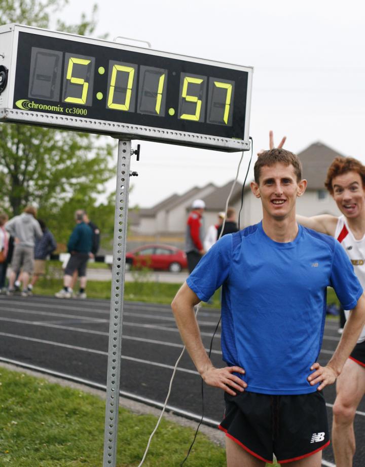 Going into the 2000m my goal was to run 62 seconds per lap, so anything under 5:15:00 would have been satisfactory and 5:10 would have been peachy keen. I finished up with a 5:15:39 which is really close to my goal but by not breaking 5:15 means I averaged 63 seconds/lap which doesn’t sound nearly as good as 62’s. [splits: 62, 2:05, 3:09, 4:13] I feel the same way after this race as I did in London… too much in control when I should be more aggressive. It’s as if I’m stuck in marathon mode and I’m afraid of blowing up with 10km to go, which is impossible in races much shorter than 10km! This 2000m will help set-up my 5000m this weekend in Nashville where I hope to break the marathon mould and get after it.
