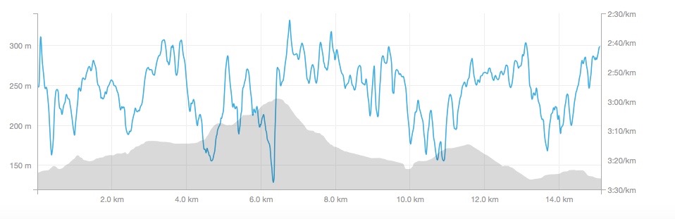 I underestimated the guys I broke on the hill and figured I would catch them again once it flattened out. That didn’t go as planned. They were running in a pack and I was chasing alone. On a couple of occasions one guy would fall off and I would pass him. In the final kilometre I was closing-in but it was too little too late. Perhaps I got within 5-6 seconds of them but lost a little in the last bit when they kicked for the line.