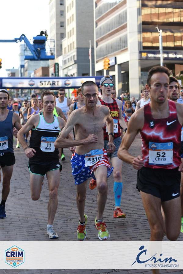 My second race in August was the Crim 10 Miler in Flint, Michigan. Also a very fun race, great atmosphere although not as scenic as Maine. My goal at Crim was to run a faster pace than Beach to Beacon. Luckily I found a good pack to run with so I never looked at my watch. Well, not until after 9 miles. I rolled with this chase pack, faded off from them up the hills around mile 5 and then caught back up with them. And then faded again around 8 miles to finish 14th.