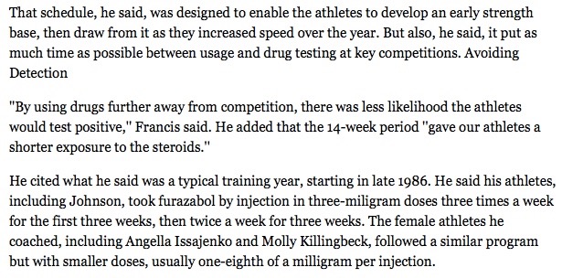 *whereabouts refers to a website/app where athletes in the drug testing pool have to input where they will sleep, train, do regular activities and have a one hour slot each day where they can be sure to test you.